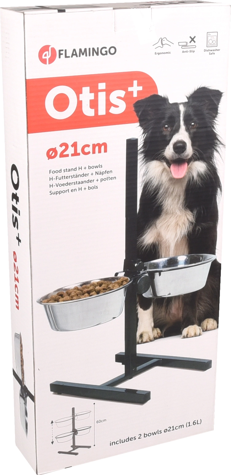 Support d’alimentation ergonomique car réglable en hauteur avec 2 gamelles en acier inoxydable, diamètre 21cm (1500ml).