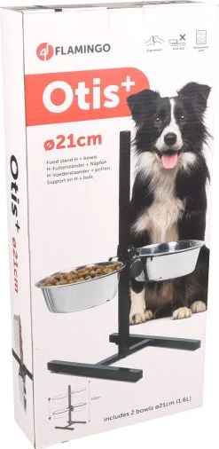 Support d’alimentation ergonomique car il est réglable en hauteur avec 2 gamelles en acier inoxydable, diamètre 27cm (4000ml)